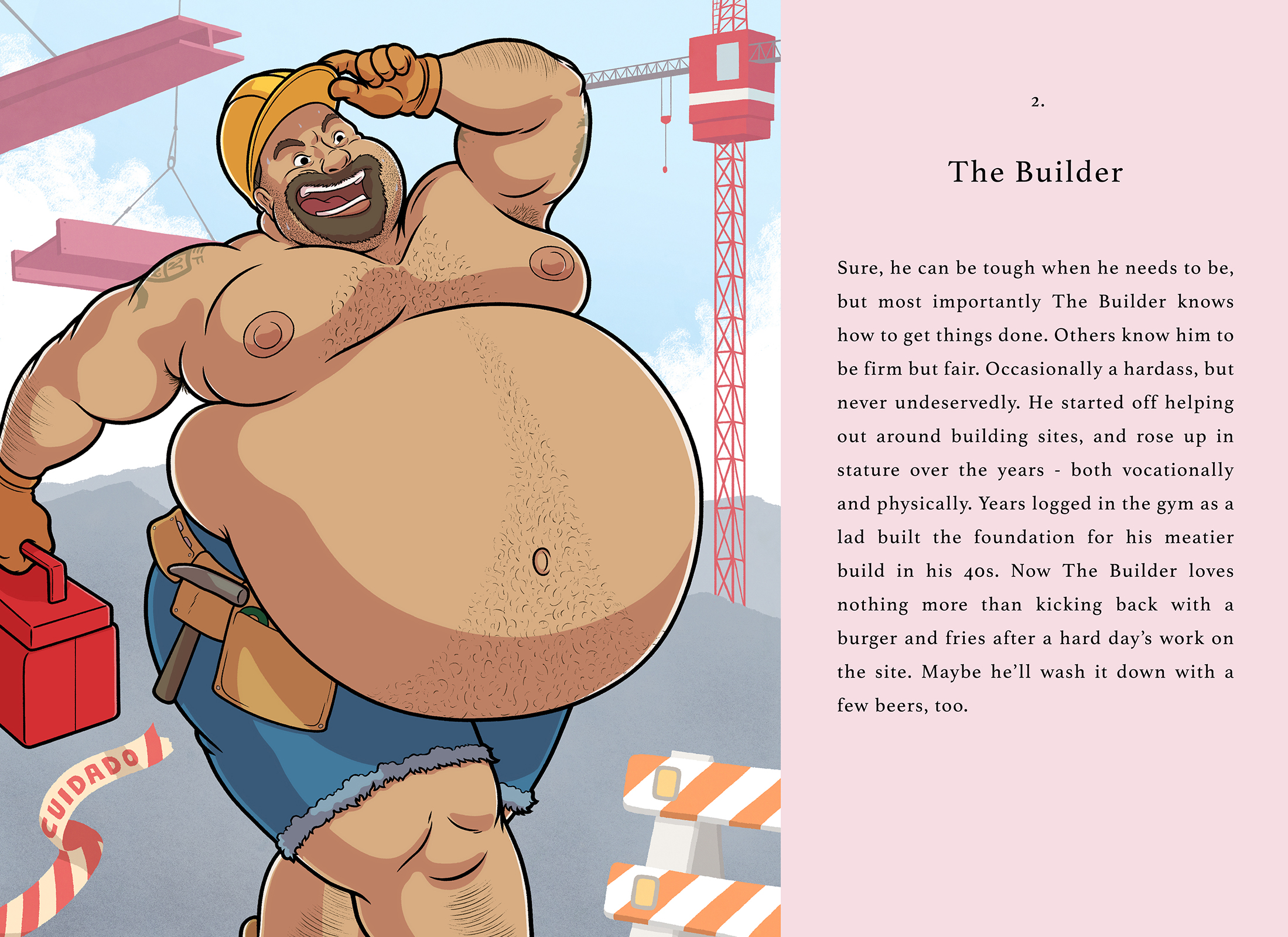 'HEAVY WORK' is a collection of full-color, high quality, hi-res artworks showcasing bigger men across a wide range of jobs, roles and walks of life. The collection contains guys like The Builder, The Rugby Player, The Trucker, The Boss, and many more. Each of the 28 illustrated characters has their own accompanying bio. This art collection also includes a 23-page sketchbook of bonus material, including alternate designs and unused characters.